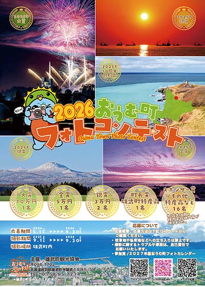 ただし、応募作品は雄武町観光PRを目的として、ポスター、パンフレット、WEB、SNS、展示、出版物、観光PR物などに使用する場合があります。